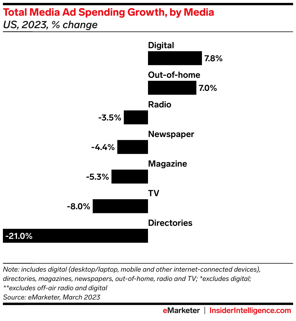 Context is everything: Since the second half of 2022, ad spend growth has contracted considerably as the pandemic boom cooled. Social media companies posted significantly lower ad revenues, longtime advertisers slashed marketing teams and budgets, and interest rates forced companies to hold their wallets close.