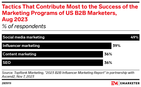 Key Stat: Among US B2B marketers, 49% said social media marketing contributes the most to their marketing programs’ success.