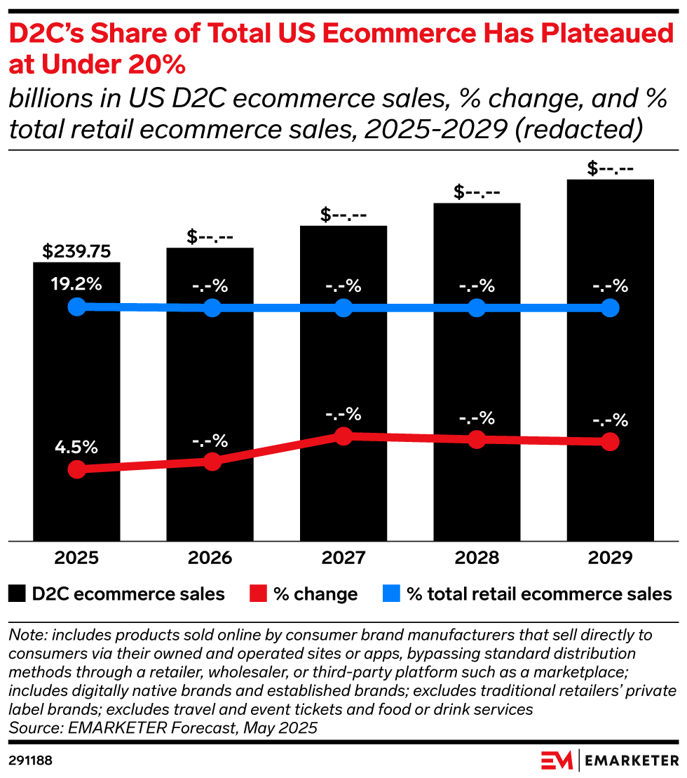 Key Stat: US D2C ecommerce sales will reach $239.75 billion in 2025, accounting for 19.2% of total retail ecommerce sales.