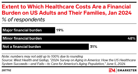 With November’s presidential election looming, 48% of registered voters said lowering out-of-pocket costs should be the government’s most important healthcare priority, per KFF Health Tracking Poll data. Persistent inflation and the high cost of prescription drugs and medical care have had a significant impact on consumer finances. Over two-thirds of US consumers (67%) said healthcare costs are a financial burden to them and their families, per a January 2024 West Health-Gallup survey. And nearly one-third (31%) are concerned about their ability to pay for prescription drugs in the next 12 months.
