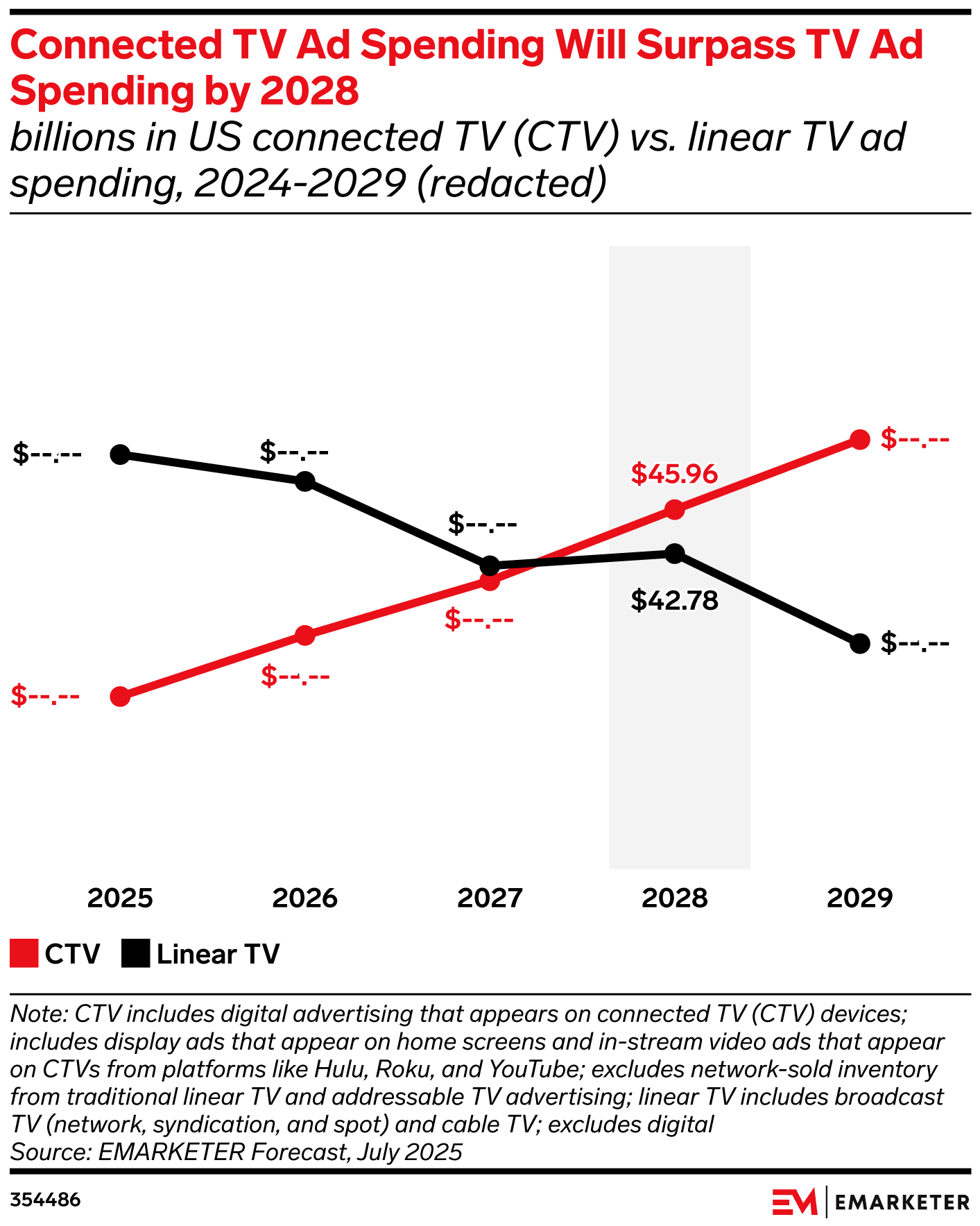 Key Stat: CTV ad spending in the US will near $46 billion in 2028 and surpass linear TV ad spending for the first time.