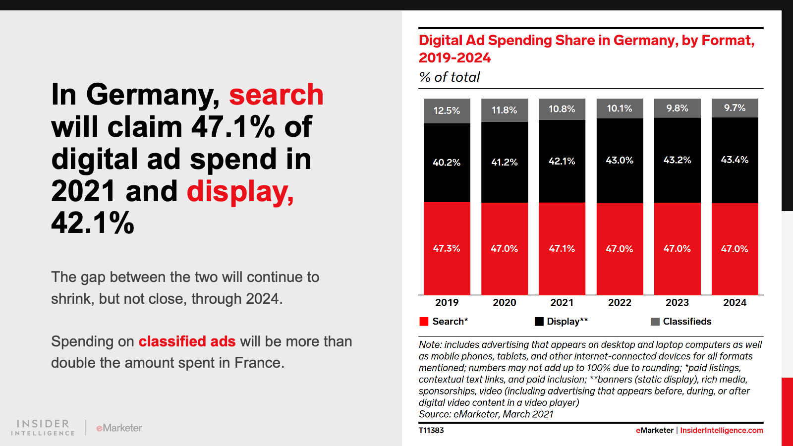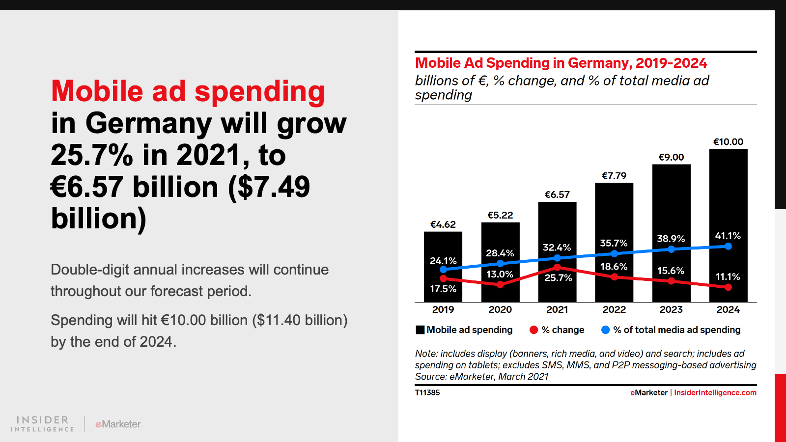 KEY STAT: In 2021, digital ad outlays in both countries will jump by double-digit rates, to reach €6.35 billion ($7.24 billion) in France and €9.49 billion ($10.82 billion) in Germany.