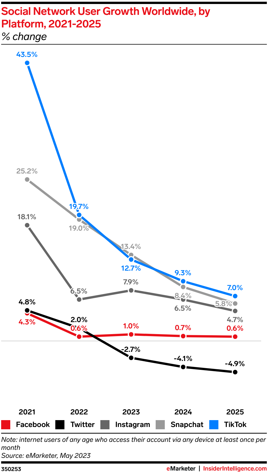 KEY STAT: Almost half (48.3%) of the world’s population will be social network users this year.