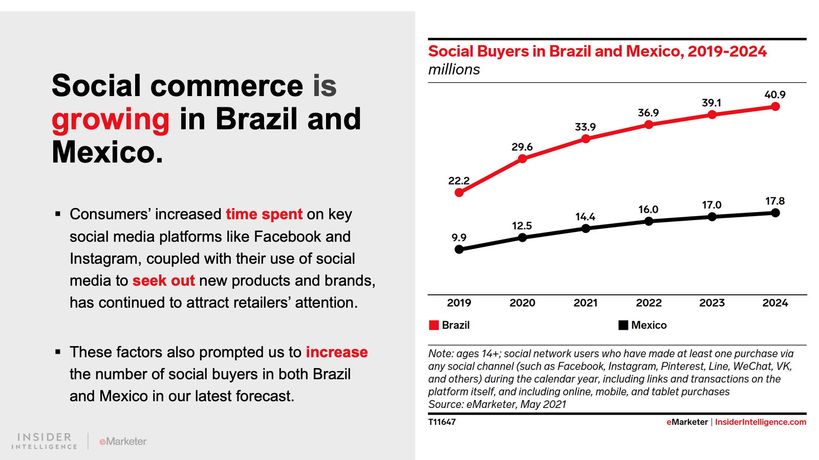 WHAT’S IN THIS REPORT? This report features our latest forecasts for total retail, ecommerce, and mcommerce sales in Latin America, with breakouts for Argentina, Brazil, and Mexico. It also examines key drivers fueling regional market movements in 2021 and beyond.