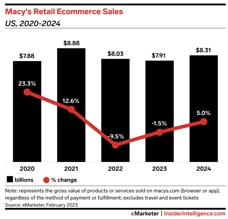 • Macy’s ecommerce growth of -1.5% this year will be far below the 10.0% growth the US ecommerce market should broadly experience.
