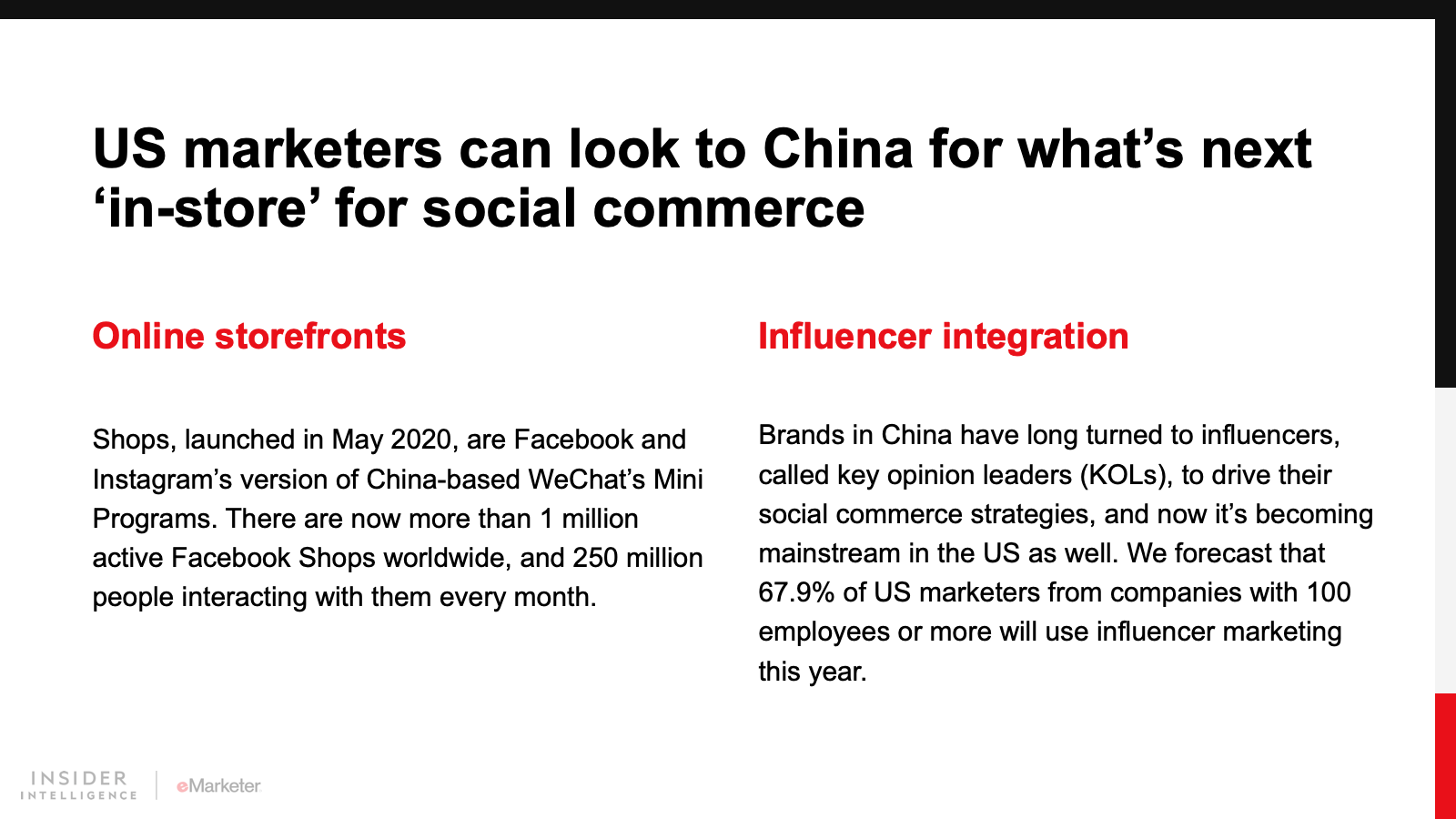 Social commerce in the US is following in China’s footsteps, but the path to success won’t be exactly the same. Here’s how US brands can use China as a road map for their social commerce strategies, including livestream shopping.