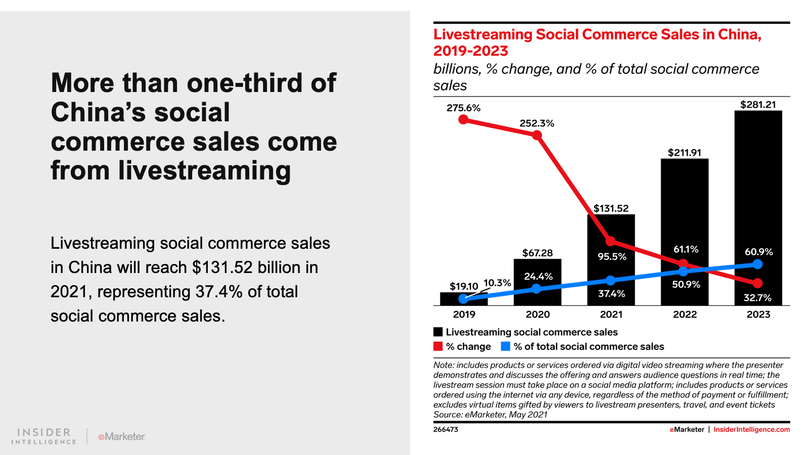 Livestreaming commerce is still in its infancy in the US, but in China, it’s already big business: Our forecast shows that China will generate $131.52 billion in livestreaming social commerce sales in 2021. US marketers can use China as an example of how to incorporate livestreaming into their own social commerce strategies, such as tapping creators and influencers to drive engagement and sales.