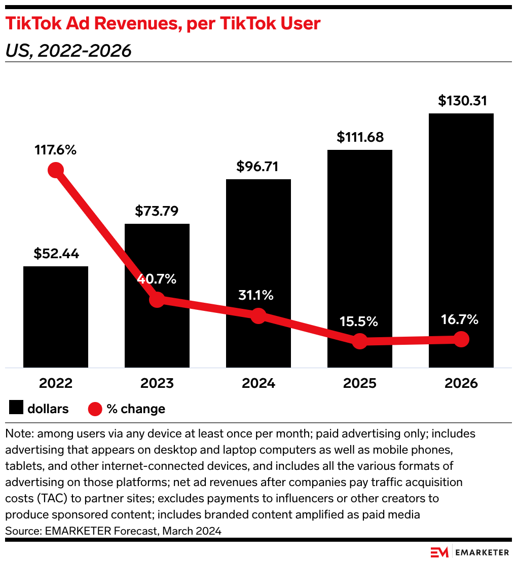 Our take: While facing an existential threat, TikTok's aggressive pursuit of advertising revenue streams underscores its ambition to cement its position as a formidable marketing channel.