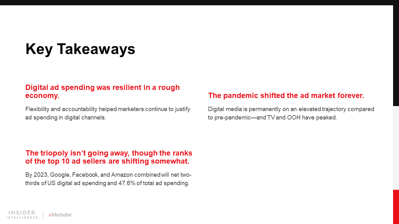 Advertisers pulled back hard on spending in late Q1 and Q2 last year, and when they returned with updated messaging, they looked to ad channels that offered flexibility and accountability. That meant a strong recovery for digital ad spending as traditional media faced steep spending drops.