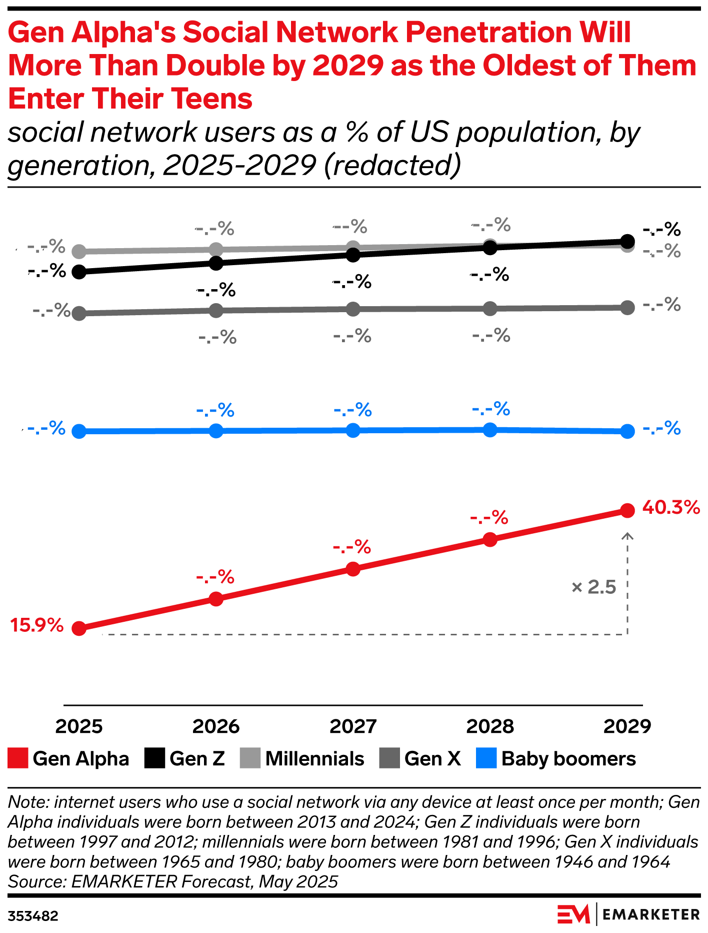 Key Stat: We expect the percentage of Gen Alphas who are social network users to increase from 15.9% in 2025 to 40.3% in 2029 as they enter their teens, fueled by greater independence and access to their own smartphones.